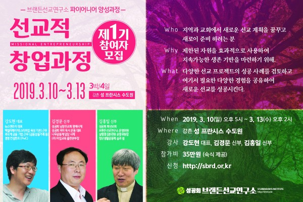 [선교적 창업과정]은 지역이나 교회 등에서 새로운 선교를 꿈꾸고 있는 분들을 위해 마련되었습니다.